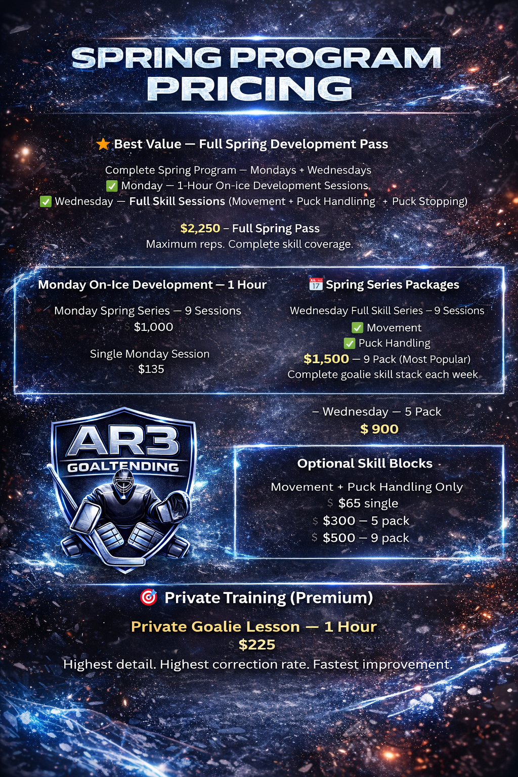 Tryout Prep/Spring Maintenance Ice + TOTAL GOALIE Wednesdays